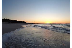 This is image of a beach at golden hour.